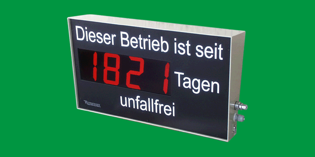 Applikationsbeispiel: Unfallstatistikanzeige UNF-IN-14D mit mattschwarzer Frontplatte