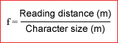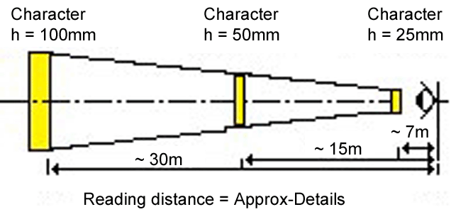 Which character size for which reading distance? The following illustration shows reference values at a frontal view to the display.