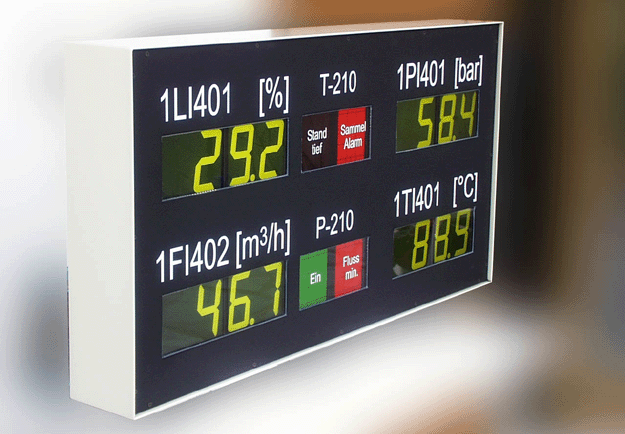 Production data display with 7+ Segment-LCD, LCD Status display; Fixed markings