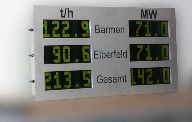 Production data display with 38 Segment-LCD 50mm as mounting version into mosaic panel