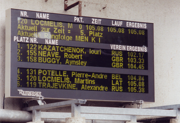 Alphanumeric LCD-Matrix display 3 lines with 243mm per line; high solution (transflective); Canoe Europian championships